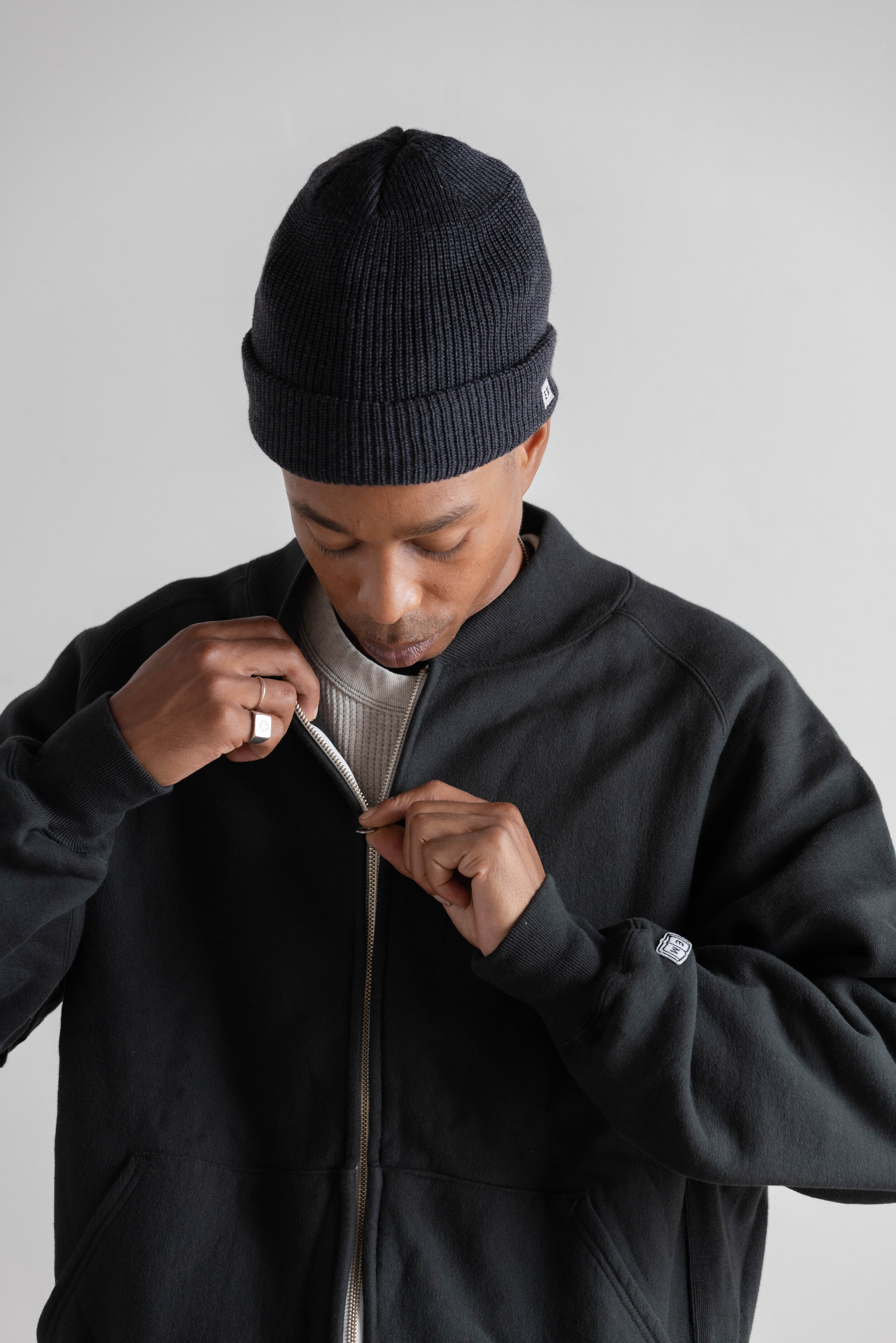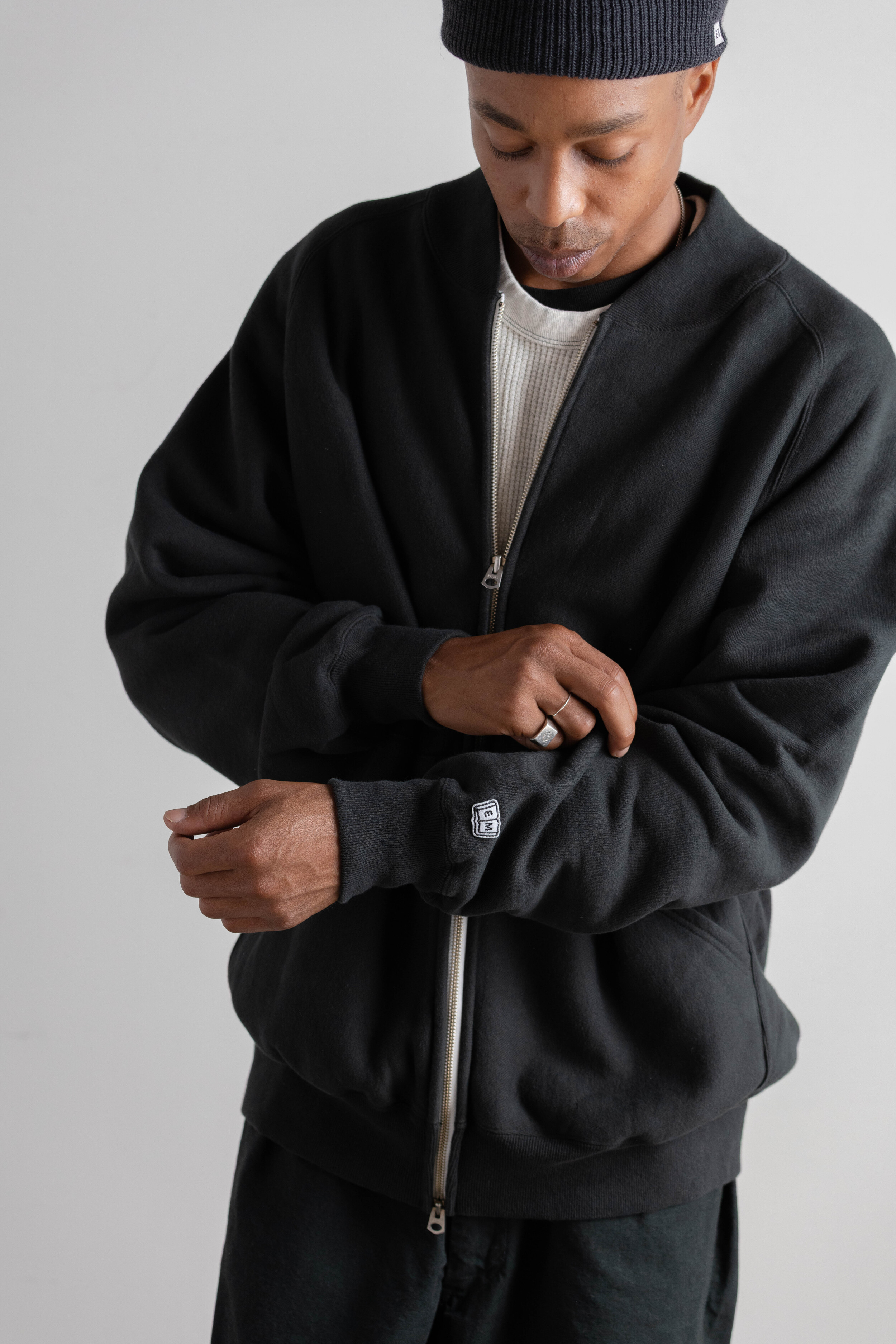 Zip Rib Neck Sweat (3color)