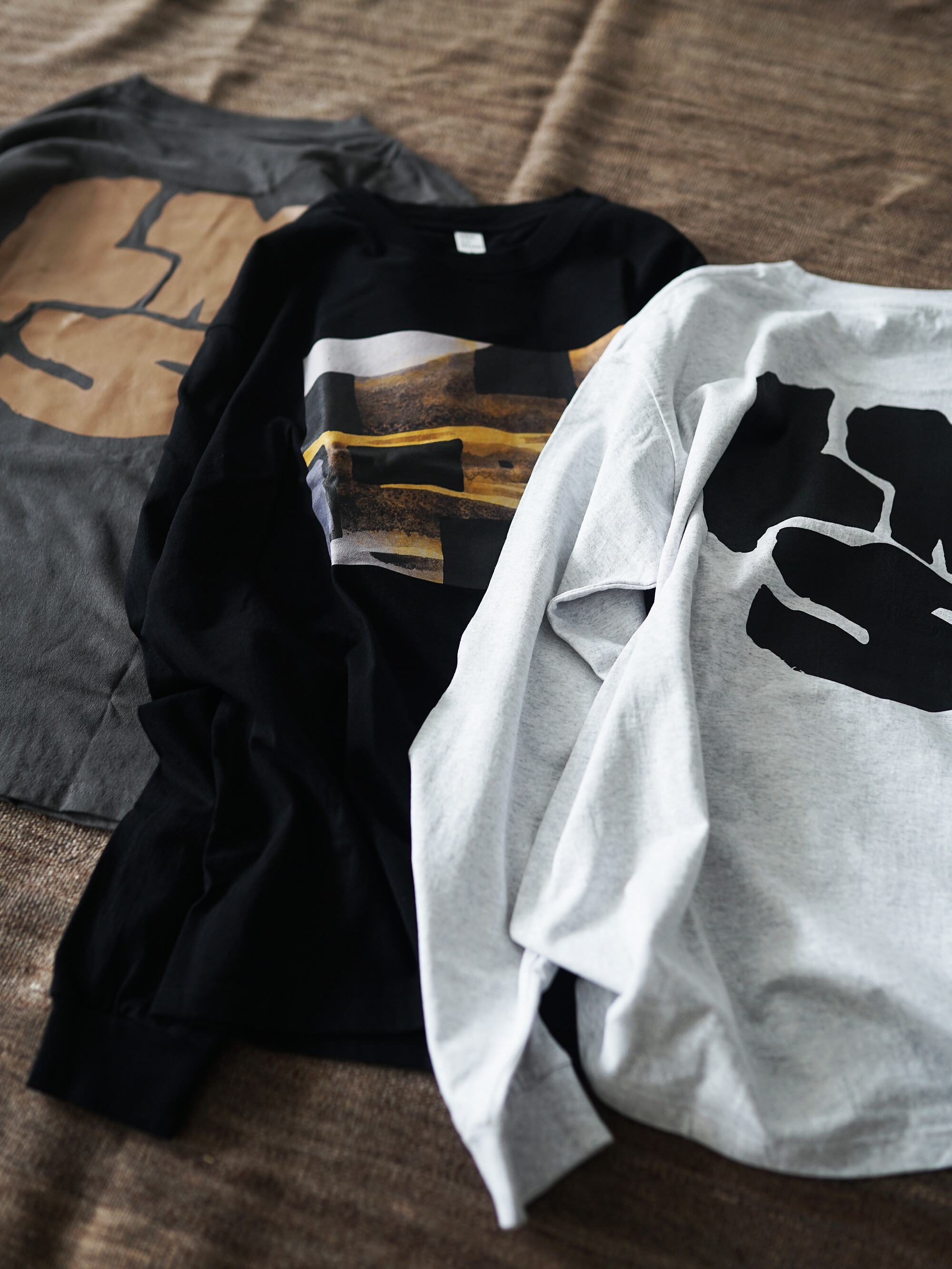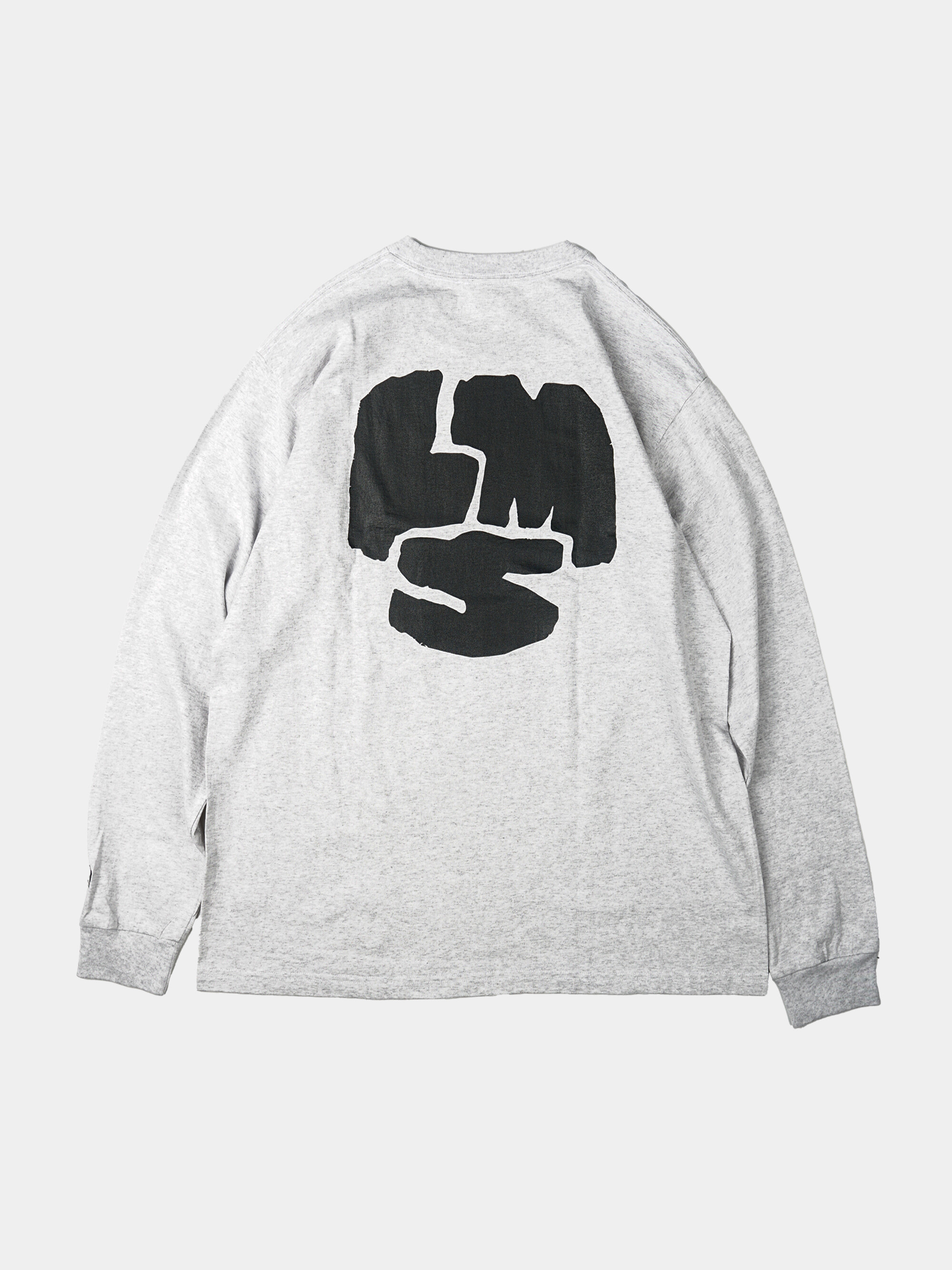LIFEMODERNSERVICE 의 로고와 레나 후지모토의 아트워크가 프린트 되어 있는 롱 슬리브 티셔츠.